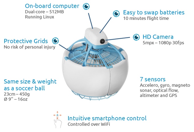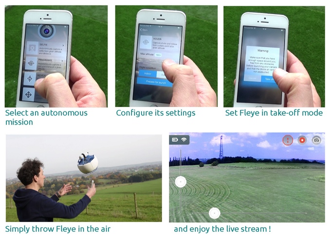 Fleye操作十分簡單,只要透過手機的APP就可以控制它。用家也可以預先設定Fleye的飛行路線,讓它自主飛行。規格上Fleye只有一個足球大小,并搭配了1080p的攝影機及500萬像素的拍照功能。