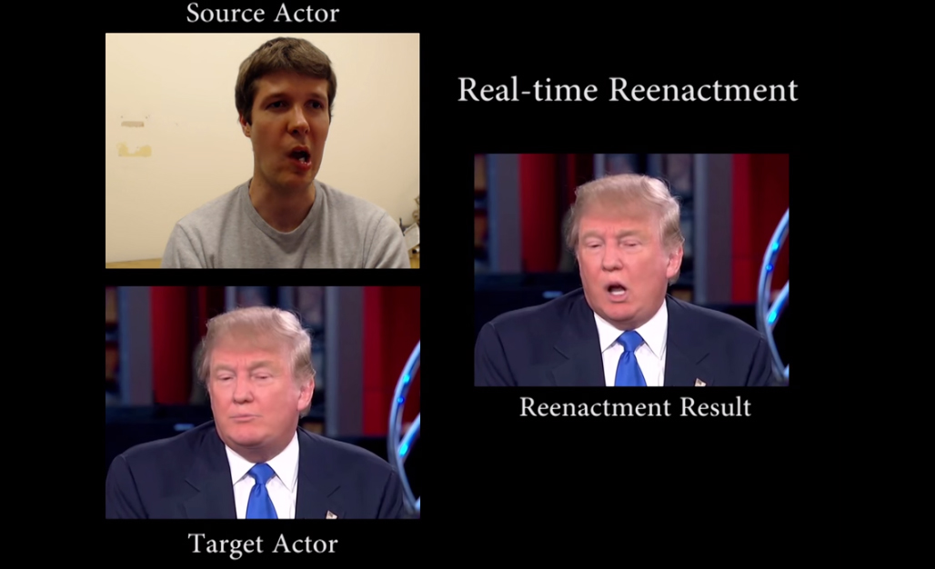 從片段中可以看到,有人可以將他說話時的臉部表情移到知名人物身上,而且模仿得非常逼真。