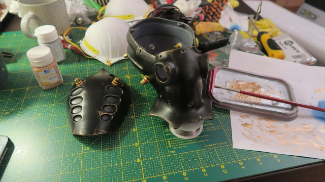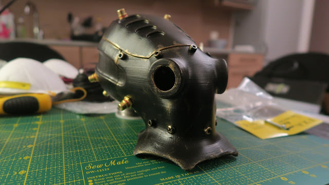 把這個人物模型3D打印出來后,他就作進一步的后期處理,就是用磨砂紙將模型磨滑一點然后噴上primer coat作之后上色的準備。他用上了vinyl顏料,先涂上啞黑色,然后再加上一些金色做出金屬的感覺。
